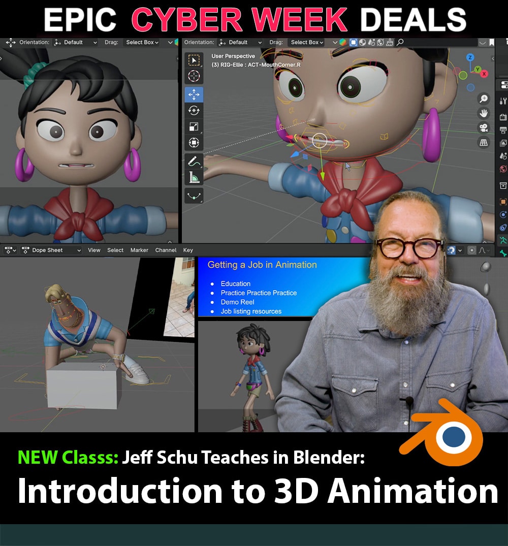 Jeff Schu has Over 25 Years of Experience in the Animation Industry. He has served as Animation Lead, Supervising Character Animator, and Director of Animation on numerous high-profile projects. His credits include "Surf's Up," "Alice in Wonderland," "The Chronicles of Narnia: The Lion, The Witch & The Wardrobe," "I Am Legend," and more. He brings decades of industry experience and a passion for teaching to help you master 3D animation in Blender. You can check out his work and credits on his IMDB page.