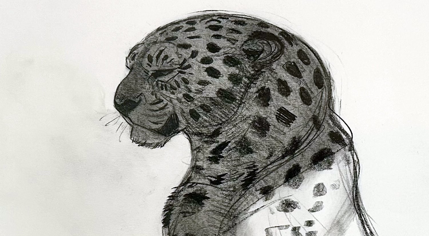 Proud Leopard captures the quiet confidence and poised strength of one of Aaron’s favorite kinds of wildlife subjects. Drawn in graphite on traditional animation paper, the piece has a loose, expressive quality while still showing the structure, anatomy, and personality that define Aaron’s animal work.